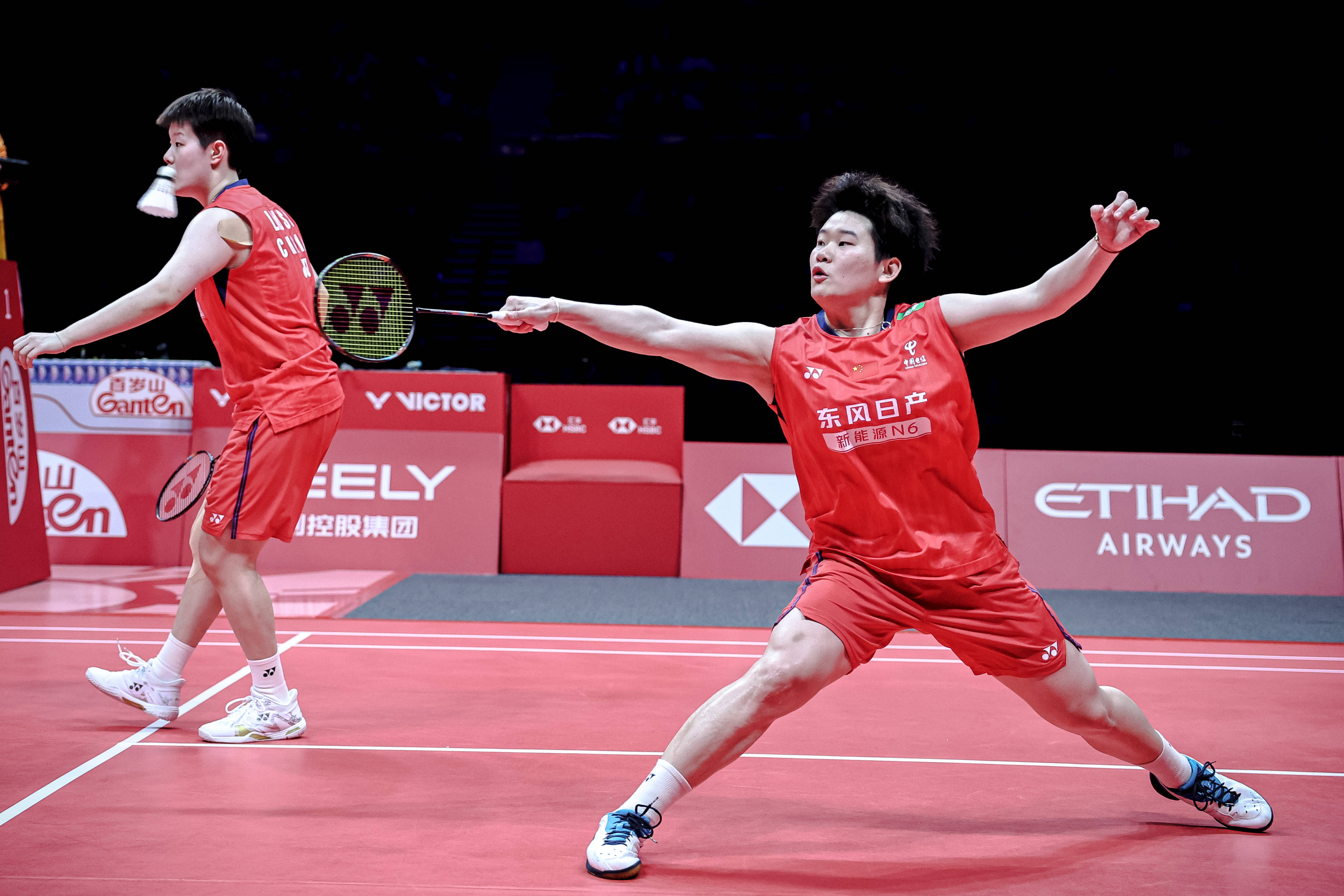 12月20日,中国组合刘圣书/谭宁(右)在比赛中。 新华社记者 江汉 摄